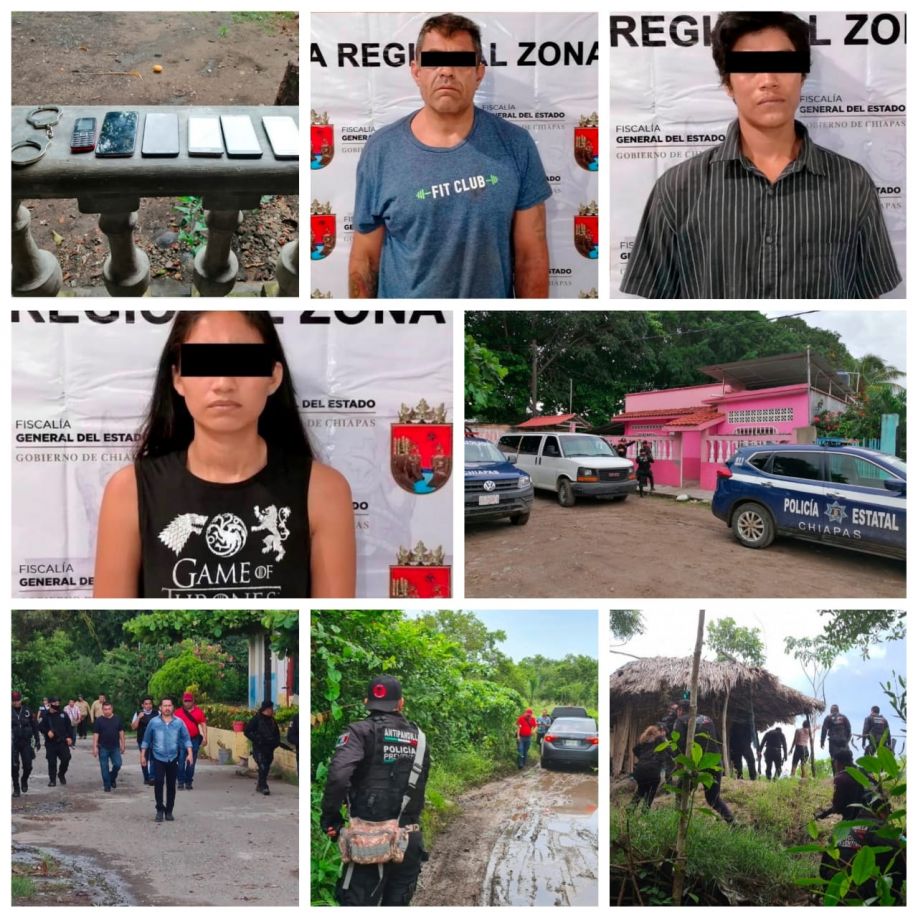 En un trabajo coordinado por la Fiscalía de Distrito Fronterizo Costa, Fiscalía Antisecuestro y Secretaría de Seguridad y Protección Ciudadana (SSyPC), se logró la detención de Alejandro "N" de 50 años, originario de Veracruz; Pablo "N", de 19 años y Lizbeth "N", de 28 años, originarios de Tapachula, como responsables de este acto criminal en agravio de la persona del sexo femenino de 22 años de edad de identidad reservada, quien fue rescatada sana y salva al interior de un domicilio en la comunidad de Puerto Madero.