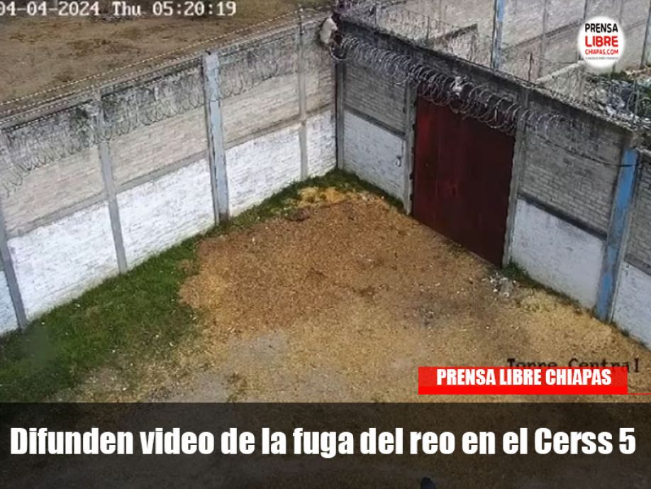 A través de imágenes de una cámara de seguridad, ubicada en la torre central, se observó la forma de cómo escapó el reo Alejandro Gómez López, del Centro de Reinserción Social para Sentenciados (Cerss) número 5, ubicado en San Cristóbal de Las Casas, a plena luz del día, el pasado 4 de abril.